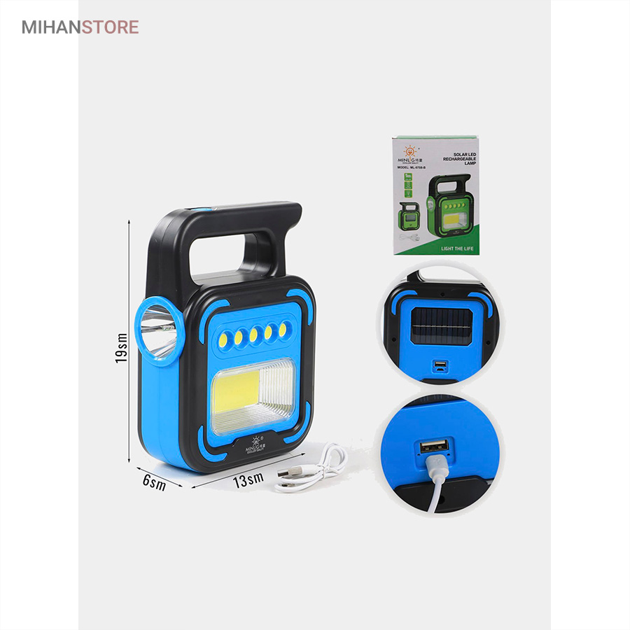یک وسیله با چندکارایی جالب می باشد. جنس بدنه چراغ کار از ABS و مقاوم در برابر ضربه می باشد. چراغ و پروژکتور اضطراری دارای پاوربانک دارای 4 حالت نوردهی که شامل: چراغ قوه سفید و چراغ قوه آفتابی با  نور زرد و چراغ جانبی قوی COB شش چراغه با نور  قوی و چراغ جانبی کوچک میباشد. چراغ کار چند کاره دارای ویژگی هایی چون: دست گیره، قابلیت شارژ با برق شهری و نور خورشید، و خروجی USB برای شارژ موبایل می باشد.